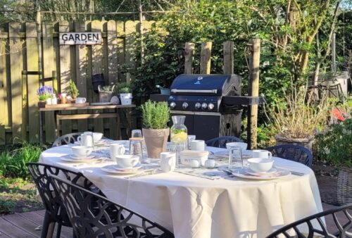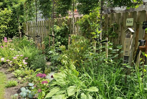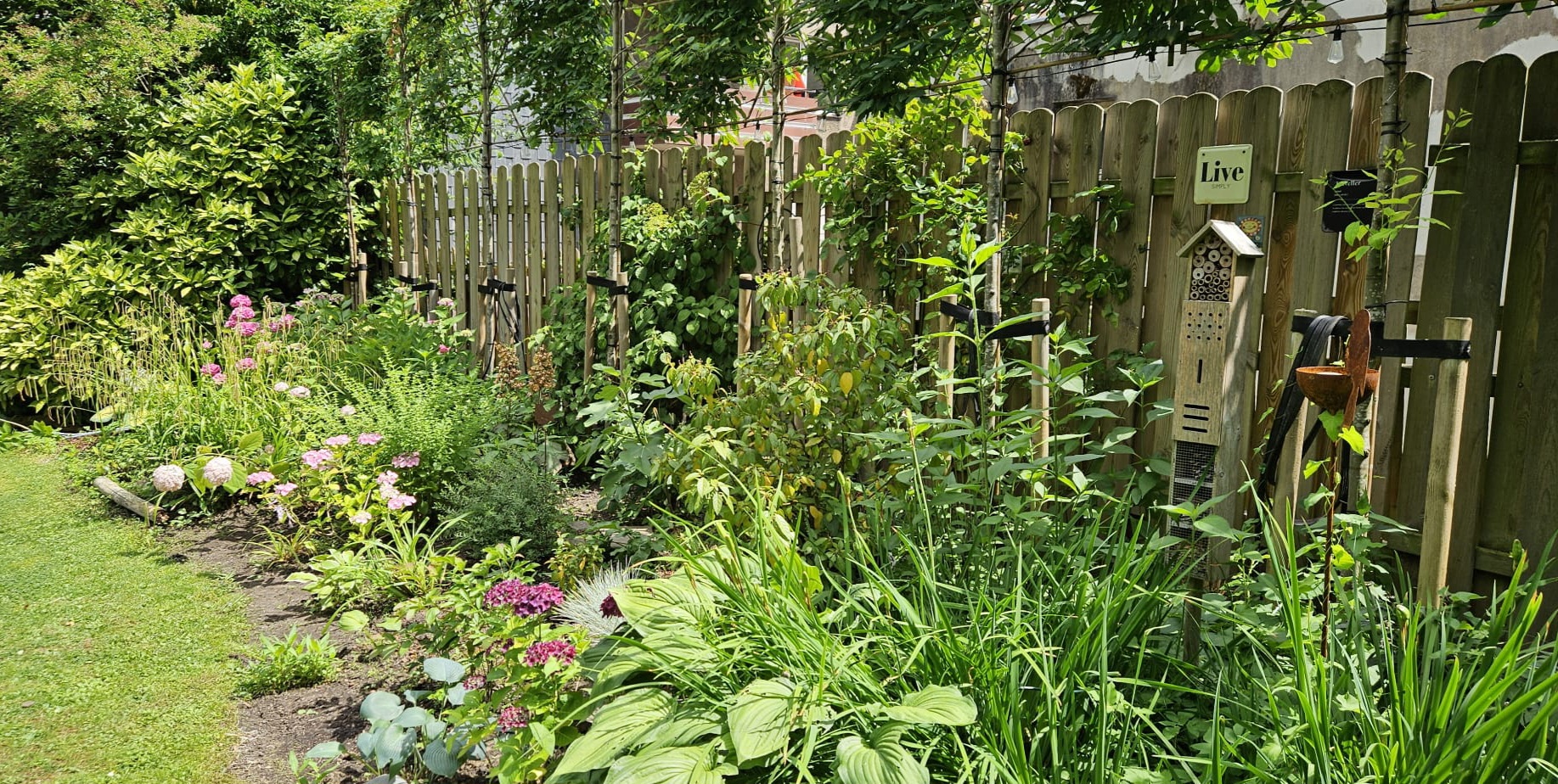 Im Anschluss besuchen wir ein weiteres enthusiastisches Gartenpaar in ihrem noch vergleichsweise jungen Garten De Pionier-Ster. Willeke und Ruud Verschuur haben nach ihrem Umzug nach Grijpskerke innerhalb weniger Jahre eine blühende Oase von 3.300 Quadratmetern Größe gestaltet. Üppige Blumenrabatten, in denen auch Ziergräser gut vertreten sind, Inseln mit Strandpfählen, ein Vintage-Rosenbeet, ein wunderschönes Gartenhaus und ein prächtiger Gemüsegarten gehören dazu. In der hauseigenen Gärtnerei lässt sich der eine oder andere Staudenableger ergattern. Somit wäre auch für ein passendes Reiseandenken gesorgt.
