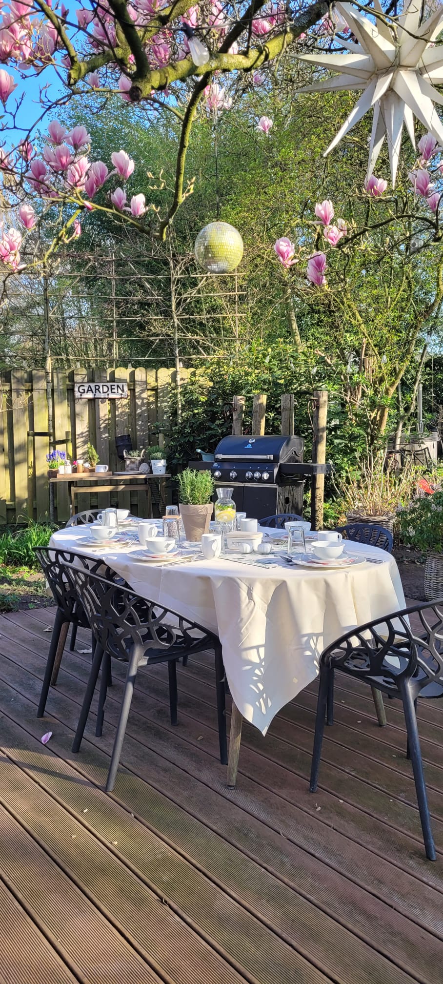 - Kaffee/Tee und teilweise Gebäck/Kuchen in den Gärten